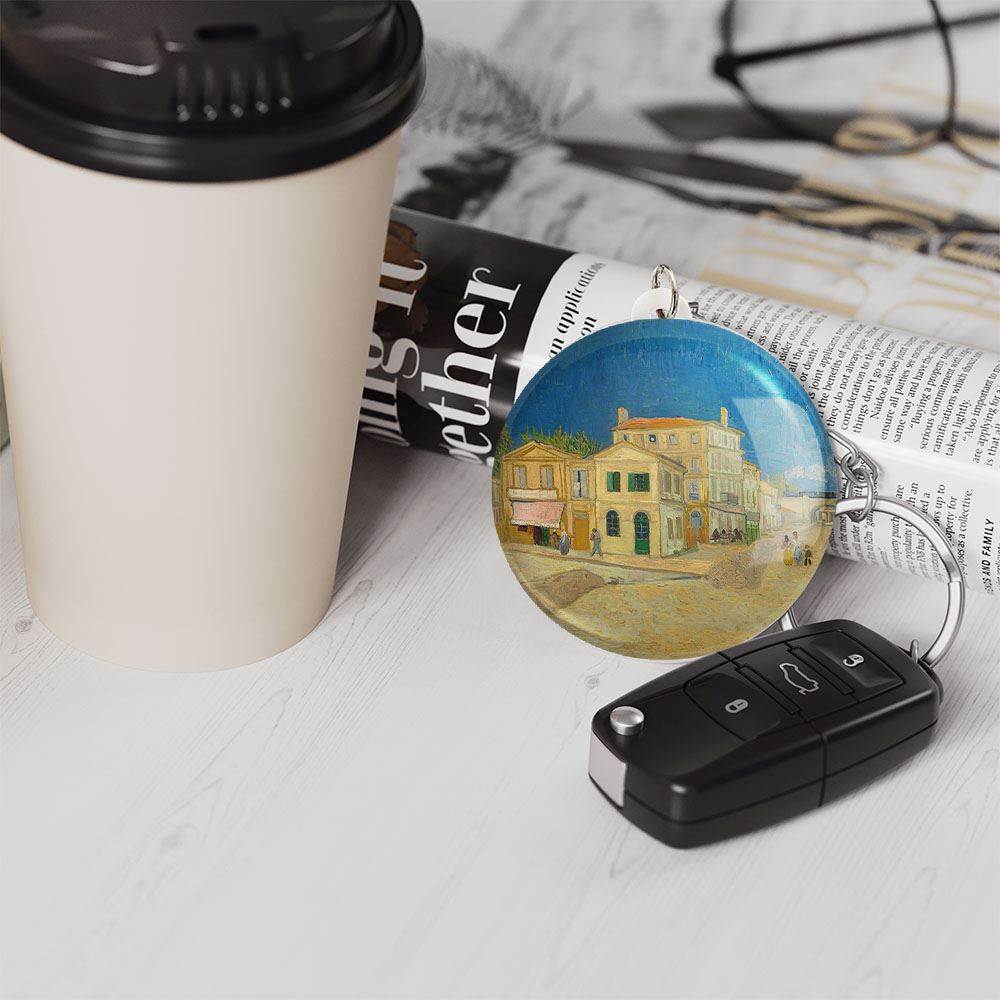 جاکلیدی نقاشی خانه زرد رنگ اثر ونسان ونگوگ صرفا برای آویز کلید نیست و میتوان آن را به عنوان آویز زینتی از زیپ کیف، آیینه جلوی خودرو، درب کمد دیواری اتاق ها و… آویزان کرد.
