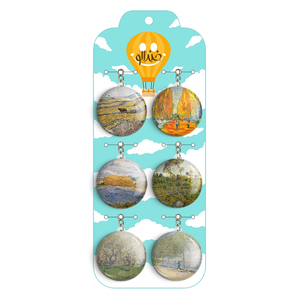 پک 6 عددی جاکلیدی خندالو طرح نقاشی های ونسان ونگوگ (Van Gogh) با استفاده از روکش سلفون حرارتی مات ضدخش تولید شده که خاصیت ضدخش بودن آن عمر مفید استفاده از جاکلیدی ها را افزایش میدهد. چاپ جاکلیدی ها با دستگاه های استاندارد و با بهترین سطح کیفیت صورت گرفته و طرح با شفافیتی مثال زدنی و با سلفون چسبی تولید شده است که باعث شده محصول نهایی بدون شکست نور دیده شود.