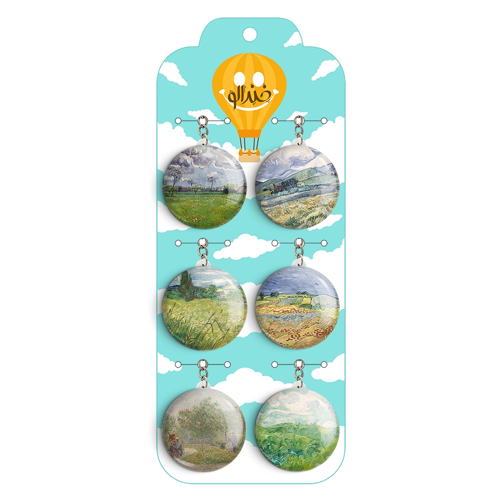 پک 6 عددی جاکلیدی خندالو طرح نقاشی های ونسان ونگوگ (Van Gogh) با استفاده از روکش سلفون حرارتی مات ضدخش تولید شده که خاصیت ضدخش بودن آن عمر مفید استفاده از جاکلیدی ها را افزایش میدهد. چاپ جاکلیدی ها با دستگاه های استاندارد و با بهترین سطح کیفیت صورت گرفته و طرح با شفافیتی مثال زدنی و با سلفون چسبی تولید شده است که باعث شده محصول نهایی بدون شکست نور دیده شود.