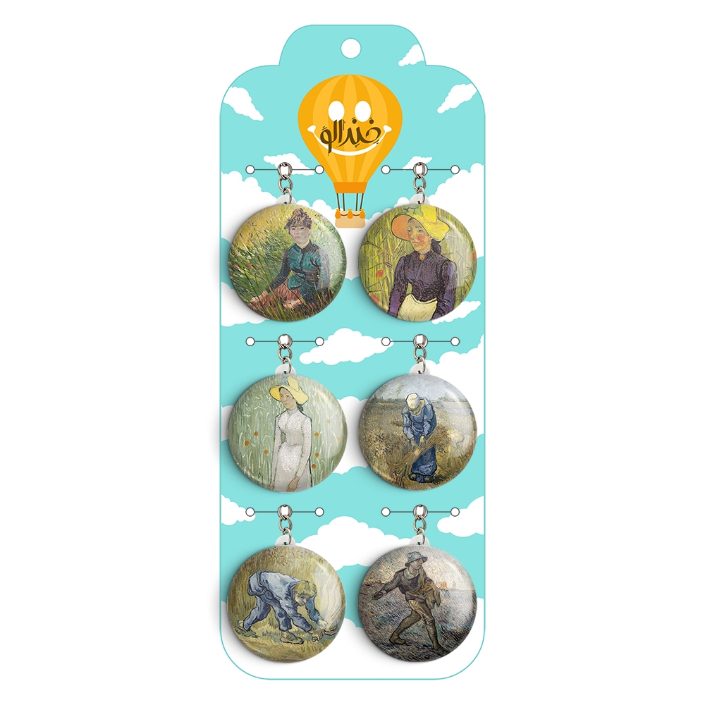 پک 6 عددی جاکلیدی خندالو طرح نقاشی های ونسان ونگوگ (Van Gogh) با استفاده از روکش سلفون حرارتی مات ضدخش تولید شده که خاصیت ضدخش بودن آن عمر مفید استفاده از جاکلیدی ها را افزایش میدهد. چاپ جاکلیدی ها با دستگاه های استاندارد و با بهترین سطح کیفیت صورت گرفته و طرح با شفافیتی مثال زدنی و با سلفون چسبی تولید شده است که باعث شده محصول نهایی بدون شکست نور دیده شود.