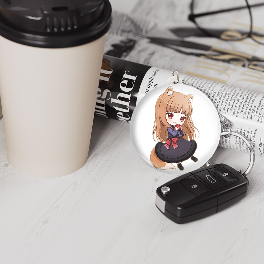 خندالو جاکلیدی هولو انیمه ادویه و گرگ را با استفاده از روکش سلفون حرارتی مات مخملی ضدخش تولید می کند که خاصیت ضدخش بودن آن، کمک میکند تا عمر مفید استفاده از جاکلیدی ها افزایش پیدا کند و با یک خراش ساده مثل برخورد سطح ناخن با محصول، دچار و خط و خش نشود.