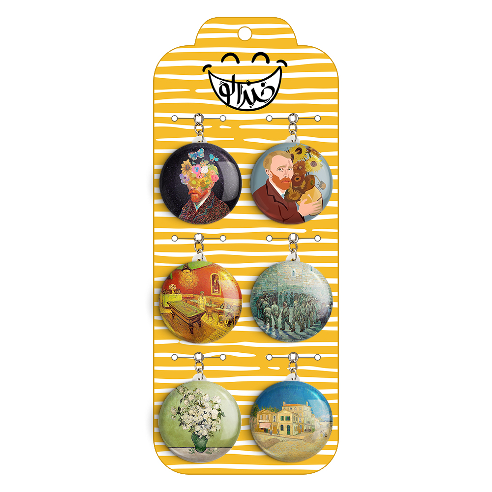 پک 6 عددی جاکلیدی خندالو طرح ونسان ونگوگ (Van Gogh) با استفاده از روکش سلفون حرارتی مات ضدخش تولید شده که خاصیت ضدخش بودن آن عمر مفید استفاده از جاکلیدی ها را افزایش میدهد. چاپ جاکلیدی ها با دستگاه های استاندارد و با بهترین سطح کیفیت صورت گرفته و طرح با شفافیتی مثال زدنی و با سلفون چسبی تولید شده است که باعث شده محصول نهایی بدون شکست نور دیده شود. همچنین بسته بندی جذاب و مینیمال جاکلیدی ها، آنها را محصولی مناسب هدیه کرده است. زنجیر و حلقه بکار برده شده در جاکلیدی خندالو از نوع حلقه درجه یک و ضخیم و محکم بوده و حین استفاده آسیب نمی بیند. قطعی پشتی جاکلیدی از جنس ABS شفاف سفید رنگ تولید شده که در مقابل خط و خش مقاوم بوده و به هیچ عنوان دچار شکستگی نخواهد شد.