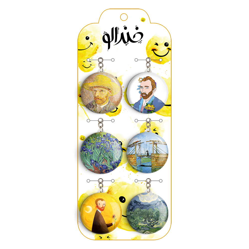 پک 6 عددی جاکلیدی خندالو طرح ونسان ونگوگ (Van Gogh) با استفاده از روکش سلفون حرارتی مات ضدخش تولید شده که خاصیت ضدخش بودن آن عمر مفید استفاده از جاکلیدی ها را افزایش میدهد. چاپ جاکلیدی ها با دستگاه های استاندارد و با بهترین سطح کیفیت صورت گرفته و طرح با شفافیتی مثال زدنی و با سلفون چسبی تولید شده است که باعث شده محصول نهایی بدون شکست نور دیده شود.