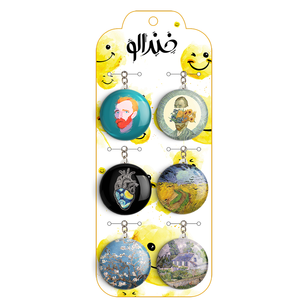 پک 6 عددی جاکلیدی خندالو طرح ونسان ونگوگ (Van Gogh) با استفاده از روکش سلفون حرارتی مات ضدخش تولید شده که خاصیت ضدخش بودن آن عمر مفید استفاده از جاکلیدی ها را افزایش میدهد. چاپ جاکلیدی ها با دستگاه های استاندارد و با بهترین سطح کیفیت صورت گرفته و طرح با شفافیتی مثال زدنی و با سلفون چسبی تولید شده است که باعث شده محصول نهایی بدون شکست نور دیده شود. همچنین بسته بندی جذاب و مینیمال جاکلیدی ها، آنها را محصولی مناسب هدیه کرده است. زنجیر و حلقه بکار برده شده در جاکلیدی خندالو از نوع حلقه درجه یک و ضخیم و محکم بوده و حین استفاده آسیب نمی بیند. قطعی پشتی جاکلیدی از جنس ABS شفاف سفید رنگ تولید شده که در مقابل خط و خش مقاوم بوده و به هیچ عنوان دچار شکستگی نخواهد شد.