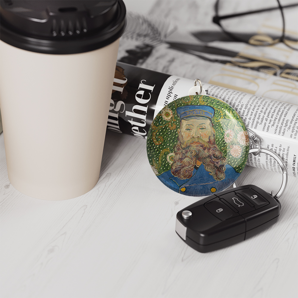 جاکلیدی پرتره جوزف رولین ونسان ونگوگ (Van Gogh) صرفا برای آویز کلید نیست و میتوان آن را به عنوان آویز زینتی از زیپ کیف، آیینه جلوی خودرو، درب کمد دیواری اتاق ها و… آویزان کرد.