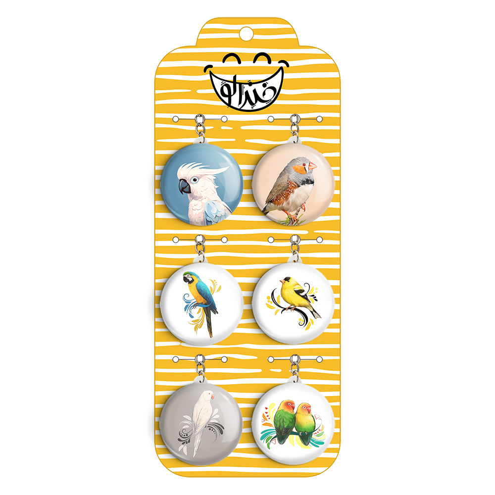 پک 6 عددی جاکلیدی خندالو طرح پرندگان زینتی با استفاده از روکش سلفون حرارتی مات ضدخش تولید شده که خاصیت ضدخش بودن آن عمر مفید استفاده از جاکلیدی ها را افزایش میدهد. چاپ جاکلیدی ها با دستگاه های استاندارد و با بهترین سطح کیفیت صورت گرفته و طرح با شفافیتی مثال زدنی و با سلفون چسبی تولید شده است که باعث شده محصول نهایی بدون شکست نور دیده شود. همچنین بسته بندی جذاب و مینیمال جاکلیدی ها، آنها را محصولی مناسب هدیه کرده است. زنجیر و حلقه بکار برده شده در جاکلیدی خندالو از نوع حلقه درجه یک و ضخیم و محکم بوده و حین استفاده آسیب نمی بیند. قطعی پشتی جاکلیدی از جنس ABS شفاف سفید رنگ تولید شده که در مقابل خط و خش مقاوم بوده و به هیچ عنوان دچار شکستگی نخواهد شد.
