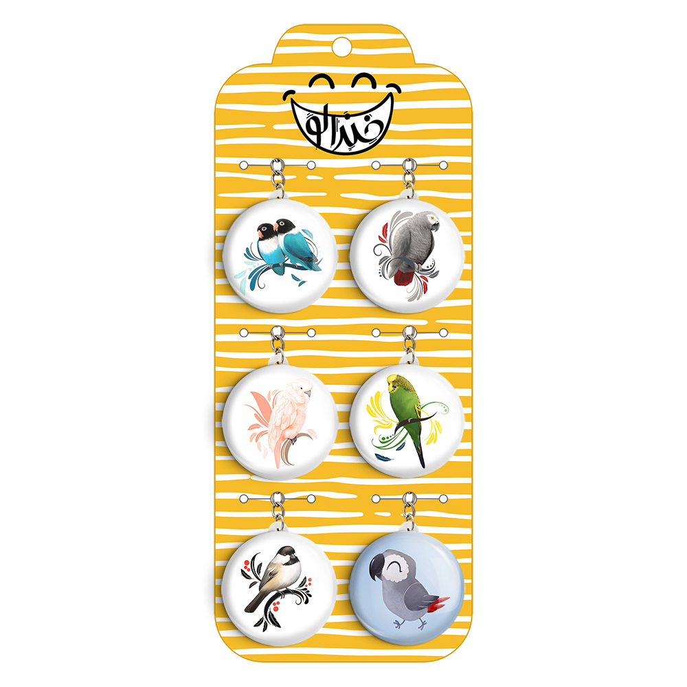 پک 6 عددی جاکلیدی خندالو طرح پرندگان زینتی با استفاده از روکش سلفون حرارتی مات ضدخش تولید شده که خاصیت ضدخش بودن آن عمر مفید استفاده از جاکلیدی ها را افزایش میدهد. چاپ جاکلیدی ها با دستگاه های استاندارد و با بهترین سطح کیفیت صورت گرفته و طرح با شفافیتی مثال زدنی و با سلفون چسبی تولید شده است که باعث شده محصول نهایی بدون شکست نور دیده شود. همچنین بسته بندی جذاب و مینیمال جاکلیدی ها، آنها را محصولی مناسب هدیه کرده است. زنجیر و حلقه بکار برده شده در جاکلیدی خندالو از نوع حلقه درجه یک و ضخیم و محکم بوده و حین استفاده آسیب نمی بیند. قطعی پشتی جاکلیدی از جنس ABS شفاف سفید رنگ تولید شده که در مقابل خط و خش مقاوم بوده و به هیچ عنوان دچار شکستگی نخواهد شد.