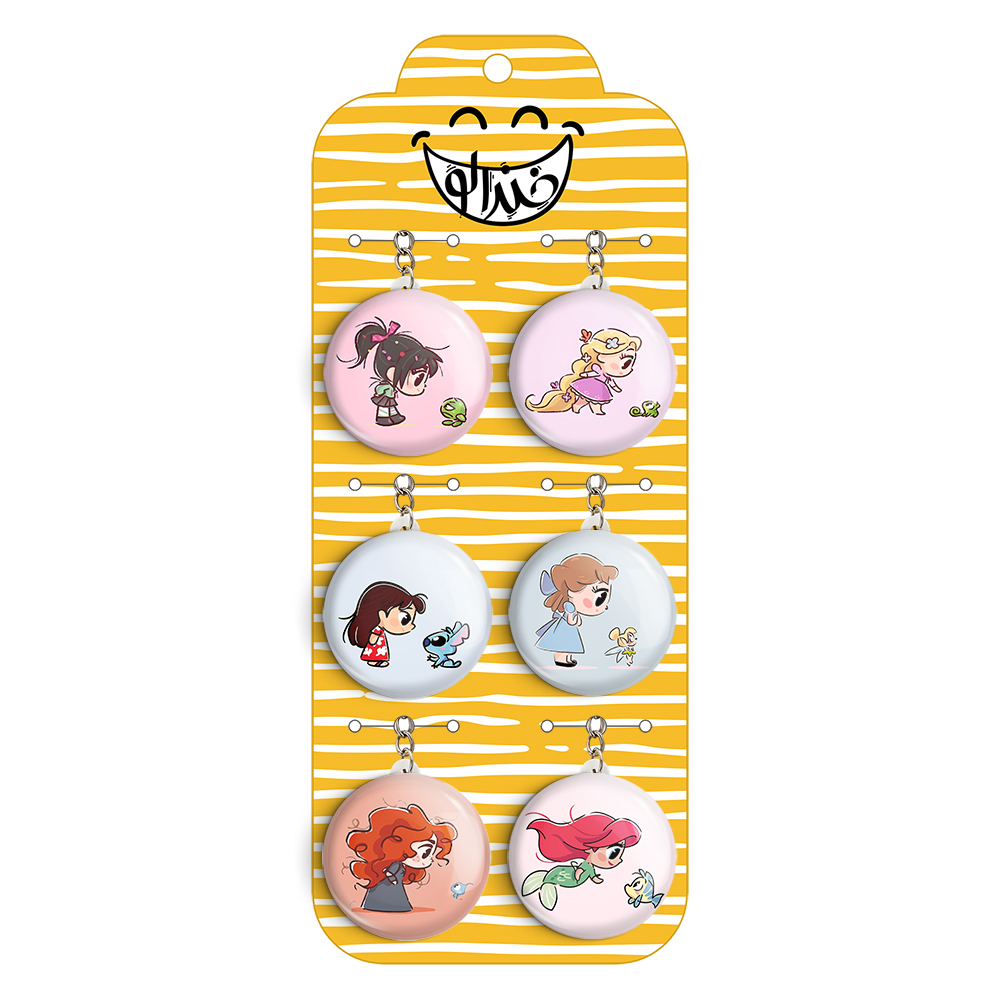 پک 6 عددی جاکلیدی خندالو طرح پرنسس های دیزنی با استفاده از روکش سلفون حرارتی مات ضدخش تولید شده که خاصیت ضدخش بودن آن عمر مفید استفاده از جاکلیدی ها را افزایش میدهد. چاپ جاکلیدی ها با دستگاه های استاندارد و با بهترین سطح کیفیت صورت گرفته و طرح با شفافیتی مثال زدنی و با سلفون چسبی تولید شده است که باعث شده محصول نهایی بدون شکست نور دیده شود.