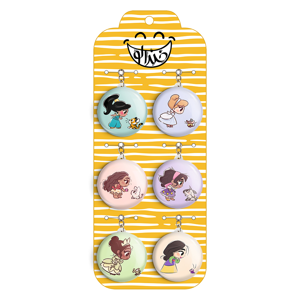 پک 6 عددی جاکلیدی خندالو طرح پرنسس های دیزنی با استفاده از روکش سلفون حرارتی مات ضدخش تولید شده که خاصیت ضدخش بودن آن عمر مفید استفاده از جاکلیدی ها را افزایش میدهد. چاپ جاکلیدی ها با دستگاه های استاندارد و با بهترین سطح کیفیت صورت گرفته و طرح با شفافیتی مثال زدنی و با سلفون چسبی تولید شده است که باعث شده محصول نهایی بدون شکست نور دیده شود.