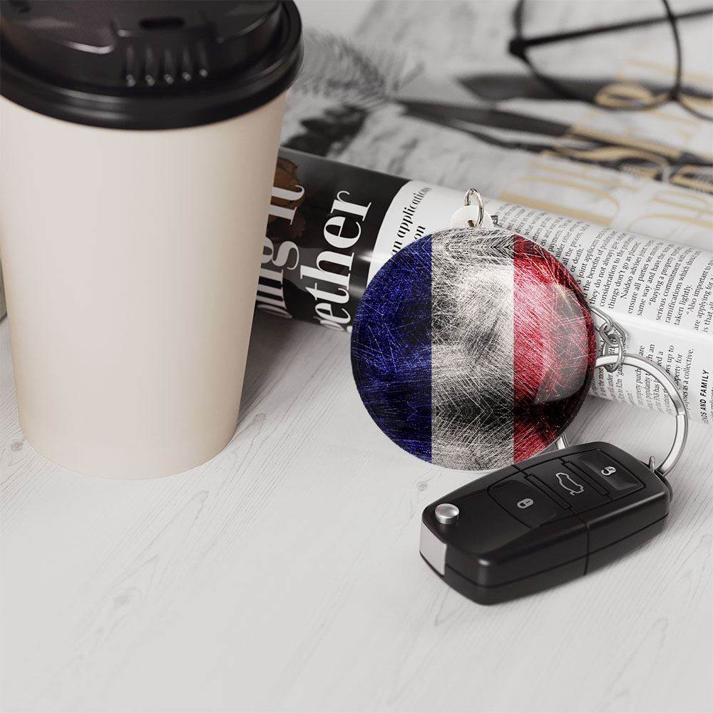 خندالو جاکلیدی پرچم فرانسه را با استفاده از روکش سلفون حرارتی مات مخملی ضدخش تولید می کند که خاصیت ضدخش بودن آن، کمک میکند تا عمر مفید استفاده از جاکلیدی ها افزایش پیدا کند و با یک خراش ساده مثل برخورد سطح ناخن با محصول، دچار و خط و خش نشود.