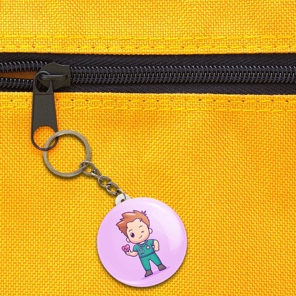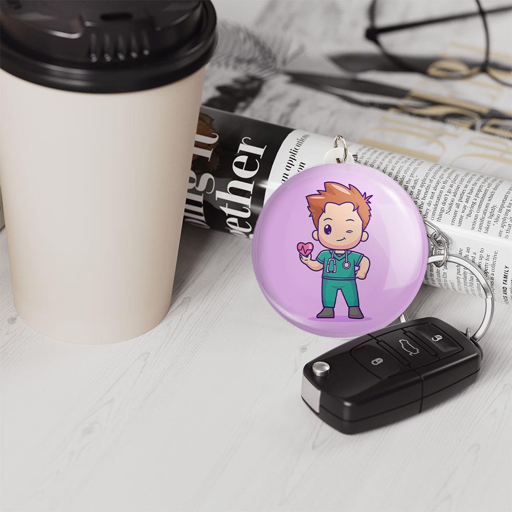 خندالو جاکلیدی پزشک و پرستار را با استفاده از روکش سلفون حرارتی مات مخملی ضدخش تولید می کند که خاصیت ضدخش بودن آن، کمک میکند تا عمر مفید استفاده از جاکلیدی ها افزایش پیدا کند و با یک خراش ساده مثل برخورد سطح ناخن با محصول، دچار و خط و خش نشود.