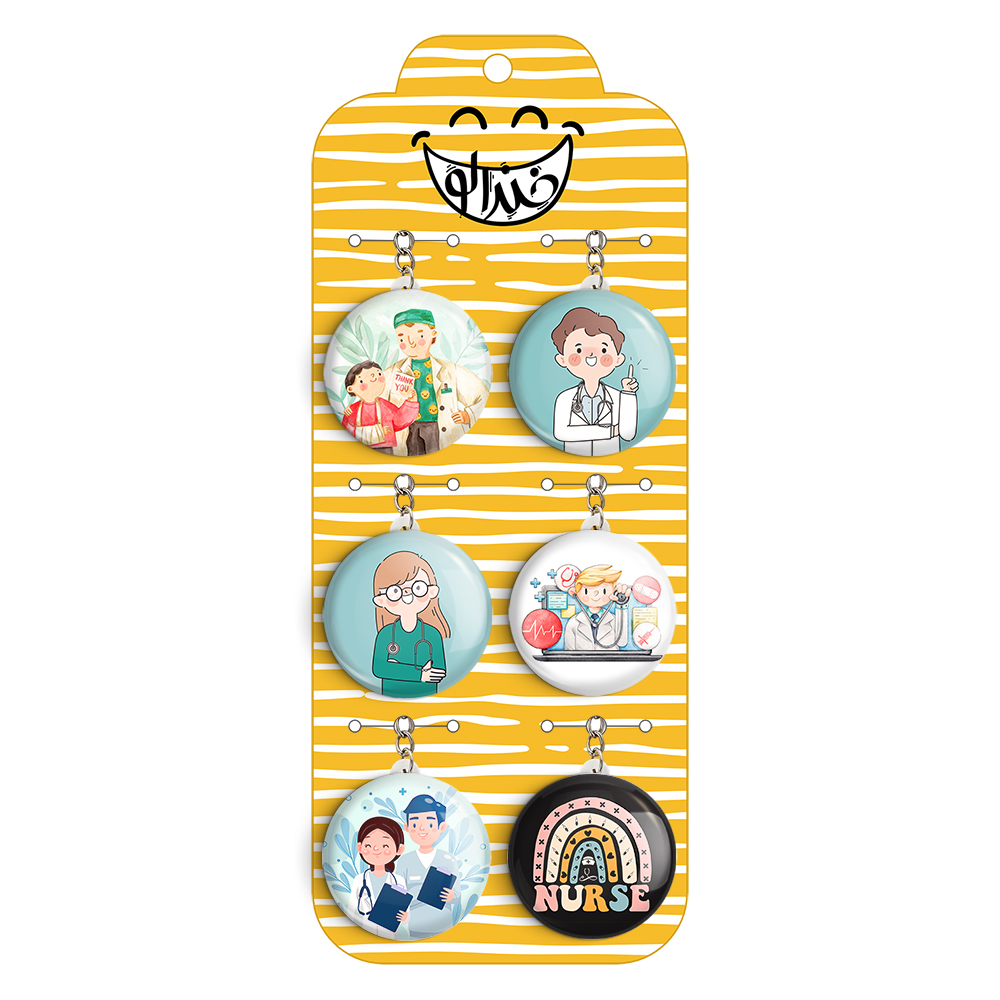 پک 6 عددی جاکلیدی خندالو طرح پزشک و پرستار با استفاده از روکش سلفون حرارتی مات ضدخش تولید شده که خاصیت ضدخش بودن آن عمر مفید استفاده از جاکلیدی ها را افزایش میدهد. چاپ جاکلیدی ها با دستگاه های استاندارد و با بهترین سطح کیفیت صورت گرفته و طرح با شفافیتی مثال زدنی و با سلفون چسبی تولید شده است که باعث شده محصول نهایی بدون شکست نور دیده شود. همچنین بسته بندی جذاب و مینیمال جاکلیدی ها، آنها را محصولی مناسب هدیه کرده است. زنجیر و حلقه بکار برده شده در جاکلیدی خندالو از نوع حلقه درجه یک و ضخیم و محکم بوده و حین استفاده آسیب نمی بیند. قطعی پشتی جاکلیدی از جنس ABS شفاف سفید رنگ تولید شده که در مقابل خط و خش مقاوم بوده و به هیچ عنوان دچار شکستگی نخواهد شد.