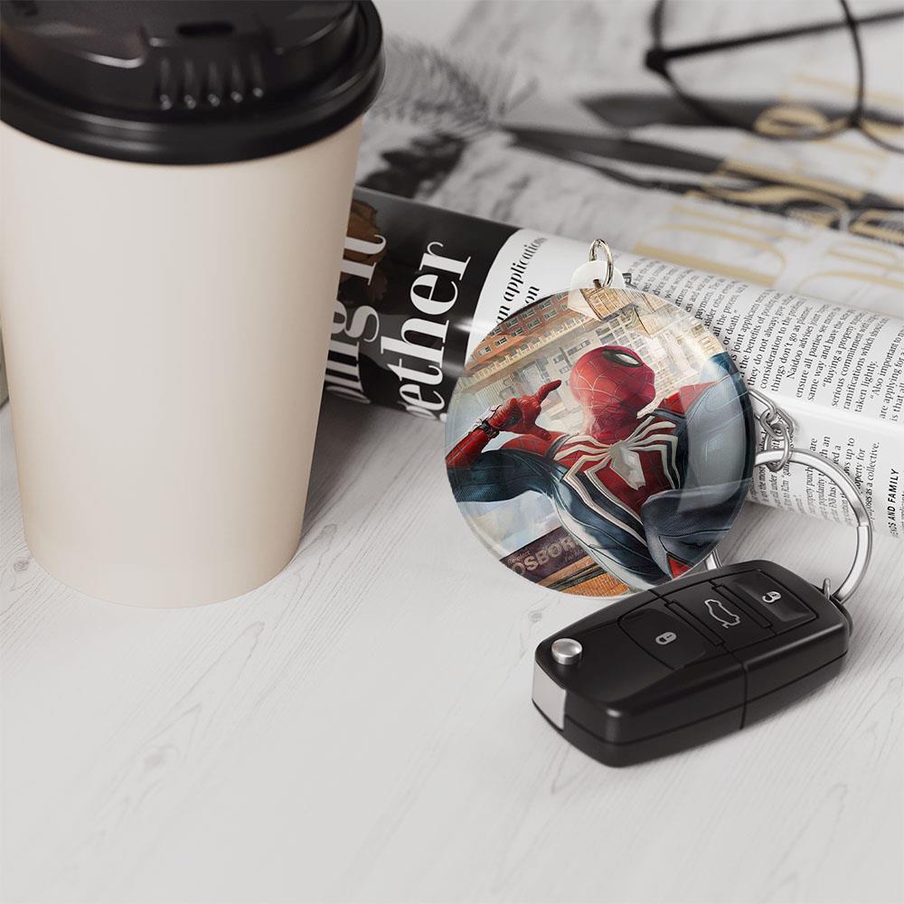 چاپ جاکلیدی پیتر پارکر مردعنکبوتی با دستگاه های استاندارد و با بهترین سطح کیفیت صورت گرفته و طرح با شفافیتی مثال زدنی و با سلفون حرارتی مات مخملی ضدخش تولید شده است که باعث می شود محصول نهایی بدون شکست نور دیده شود.