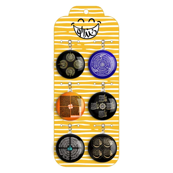 پک 6 عددی جاکلیدی خندالو طرح چهارقل با استفاده از روکش سلفون حرارتی مات ضدخش تولید شده که خاصیت ضدخش بودن آن عمر مفید استفاده از جاکلیدی ها را افزایش میدهد. چاپ جاکلیدی ها با دستگاه های استاندارد و با بهترین سطح کیفیت صورت گرفته و طرح با شفافیتی مثال زدنی و با سلفون چسبی تولید شده است که باعث شده محصول نهایی بدون شکست نور دیده شود.