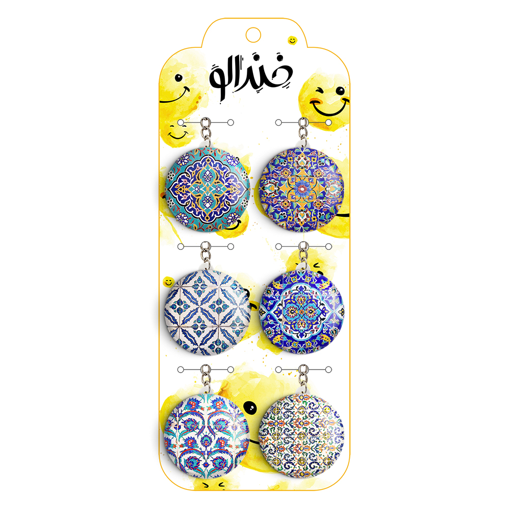 پک 6 عددی جاکلیدی خندالو طرح کاشی با استفاده از روکش سلفون حرارتی مات ضدخش تولید شده که خاصیت ضدخش بودن آن عمر مفید استفاده از جاکلیدی ها را افزایش میدهد. چاپ جاکلیدی ها با دستگاه های استاندارد و با بهترین سطح کیفیت صورت گرفته و طرح با شفافیتی مثال زدنی و با سلفون چسبی تولید شده است که باعث شده محصول نهایی بدون شکست نور دیده شود.