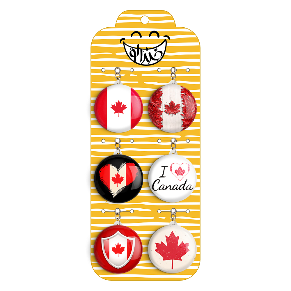 پک 6 عددی جاکلیدی خندالو طرح کانادا (Canada) با استفاده از روکش سلفون حرارتی مات ضدخش تولید شده که خاصیت ضدخش بودن آن عمر مفید استفاده از جاکلیدی ها را افزایش میدهد. چاپ جاکلیدی ها با دستگاه های استاندارد و با بهترین سطح کیفیت صورت گرفته و طرح با شفافیتی مثال زدنی و با سلفون چسبی تولید شده است که باعث شده محصول نهایی بدون شکست نور دیده شود. همچنین بسته بندی جذاب و مینیمال جاکلیدی ها، آنها را محصولی مناسب هدیه کرده است. زنجیر و حلقه بکار برده شده در جاکلیدی خندالو از نوع حلقه درجه یک و ضخیم و محکم بوده و حین استفاده آسیب نمی بیند. قطعی پشتی جاکلیدی از جنس ABS شفاف سفید رنگ تولید شده که در مقابل خط و خش مقاوم بوده و به هیچ عنوان دچار شکستگی نخواهد شد.