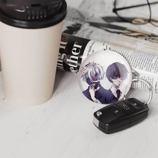 خندالو جاکلیدی کانکی کن انیمه توکیو غول Tokyo Ghoul را با استفاده از روکش سلفون حرارتی مات مخملی ضدخش تولید می کند که خاصیت ضدخش بودن آن، کمک میکند تا عمر مفید استفاده از جاکلیدی ها افزایش پیدا کند و با یک خراش ساده مثل برخورد سطح ناخن با محصول، دچار و خط و خش نشود.