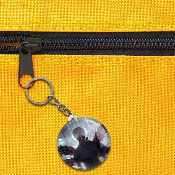 خندالو جاکلیدی کانکی کن انیمه توکیو غول Tokyo Ghoul را با استفاده از روکش سلفون حرارتی مات مخملی ضدخش تولید می کند که خاصیت ضدخش بودن آن، کمک میکند تا عمر مفید استفاده از جاکلیدی ها افزایش پیدا کند و با یک خراش ساده مثل برخورد سطح ناخن با محصول، دچار و خط و خش نشود.