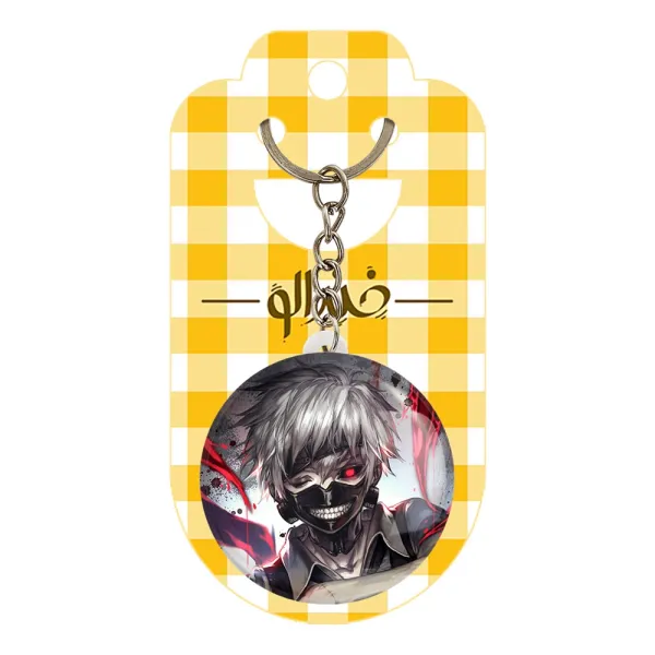 خندالو جاکلیدی کانکی کن انیمه توکیو غول Tokyo Ghoul را با استفاده از روکش سلفون حرارتی مات مخملی ضدخش تولید می کند که خاصیت ضدخش بودن آن، کمک میکند تا عمر مفید استفاده از جاکلیدی ها افزایش پیدا کند و با یک خراش ساده مثل برخورد سطح ناخن با محصول، دچار و خط و خش نشود.