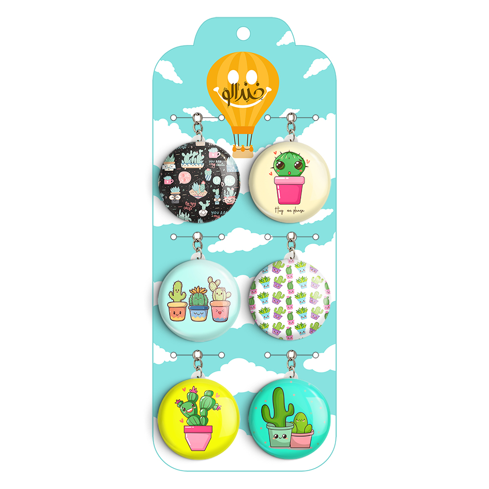 پک 6 عددی جاکلیدی خندالو طرح کاکتوس با استفاده از روکش سلفون حرارتی مات ضدخش تولید شده که خاصیت ضدخش بودن آن عمر مفید استفاده از جاکلیدی ها را افزایش میدهد. چاپ جاکلیدی ها با دستگاه های استاندارد و با بهترین سطح کیفیت صورت گرفته و طرح با شفافیتی مثال زدنی و با سلفون چسبی تولید شده است که باعث شده محصول نهایی بدون شکست نور دیده شود.