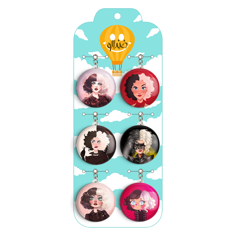 پک 6 عددی جاکلیدی خندالو طرح کروئلا (Cruella) با استفاده از روکش سلفون حرارتی مات ضدخش تولید شده که خاصیت ضدخش بودن آن عمر مفید استفاده از جاکلیدی ها را افزایش میدهد. چاپ جاکلیدی ها با دستگاه های استاندارد و با بهترین سطح کیفیت صورت گرفته و طرح با شفافیتی مثال زدنی و با سلفون چسبی تولید شده است که باعث شده محصول نهایی بدون شکست نور دیده شود. همچنین بسته بندی جذاب و مینیمال جاکلیدی ها، آنها را محصولی مناسب هدیه کرده است. زنجیر و حلقه بکار برده شده در جاکلیدی خندالو از نوع حلقه درجه یک و ضخیم و محکم بوده و حین استفاده آسیب نمی بیند. قطعی پشتی جاکلیدی از جنس ABS شفاف سفید رنگ تولید شده که در مقابل خط و خش مقاوم بوده و به هیچ عنوان دچار شکستگی نخواهد شد.