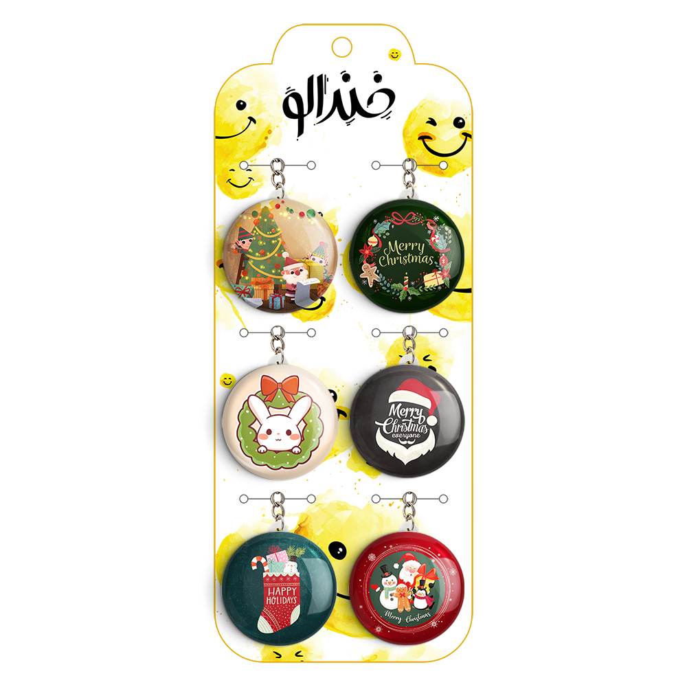 پک 6 عددی جاکلیدی خندالو طرح کریسمس با استفاده از روکش سلفون حرارتی مات ضدخش تولید شده که خاصیت ضدخش بودن آن عمر مفید استفاده از جاکلیدی ها را افزایش میدهد. چاپ جاکلیدی ها با دستگاه های استاندارد و با بهترین سطح کیفیت صورت گرفته و طرح با شفافیتی مثال زدنی و با سلفون چسبی تولید شده است که باعث شده محصول نهایی بدون شکست نور دیده شود.