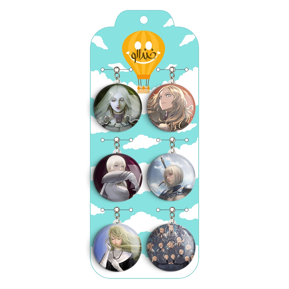 پک 6 عددی جاکلیدی خندالو طرح کلیمور (Claymore) با استفاده از روکش سلفون حرارتی مات ضدخش تولید شده که خاصیت ضدخش بودن آن عمر مفید استفاده از جاکلیدی ها را افزایش میدهد. چاپ جاکلیدی ها با دستگاه های استاندارد و با بهترین سطح کیفیت صورت گرفته و طرح با شفافیتی مثال زدنی و با سلفون چسبی تولید شده است که باعث شده محصول نهایی بدون شکست نور دیده شود. همچنین بسته بندی جذاب و مینیمال جاکلیدی ها، آنها را محصولی مناسب هدیه کرده است. زنجیر و حلقه بکار برده شده در جاکلیدی خندالو از نوع حلقه درجه یک و ضخیم و محکم بوده و حین استفاده آسیب نمی بیند. قطعی پشتی جاکلیدی از جنس ABS شفاف سفید رنگ تولید شده که در مقابل خط و خش مقاوم بوده و به هیچ عنوان دچار شکستگی نخواهد شد.