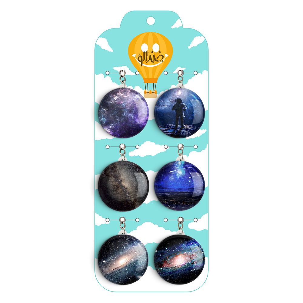 پک 6 عددی جاکلیدی خندالو طرح کهکشان (galaxy) با استفاده از روکش سلفون حرارتی مات ضدخش تولید شده که خاصیت ضدخش بودن آن عمر مفید استفاده از جاکلیدی ها را افزایش میدهد. چاپ جاکلیدی ها با دستگاه های استاندارد و با بهترین سطح کیفیت صورت گرفته و طرح با شفافیتی مثال زدنی و با سلفون چسبی تولید شده است که باعث شده محصول نهایی بدون شکست نور دیده شود.