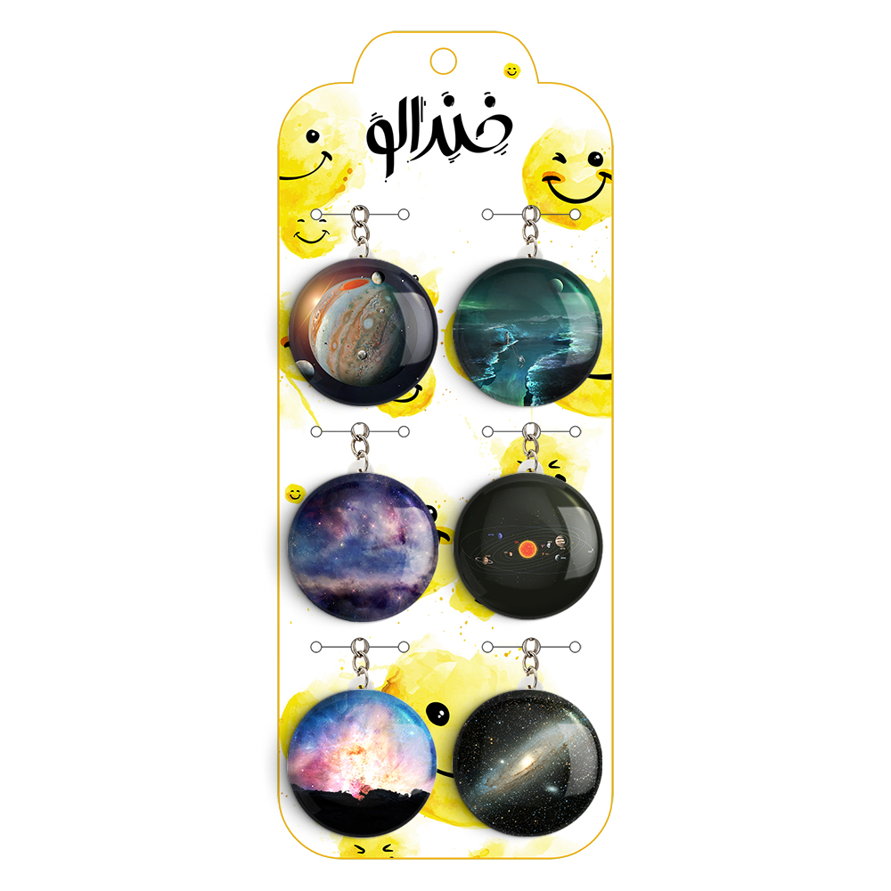 پک 6 عددی جاکلیدی خندالو طرح کهکشان (galaxy) با استفاده از روکش سلفون حرارتی مات ضدخش تولید شده که خاصیت ضدخش بودن آن عمر مفید استفاده از جاکلیدی ها را افزایش میدهد. چاپ جاکلیدی ها با دستگاه های استاندارد و با بهترین سطح کیفیت صورت گرفته و طرح با شفافیتی مثال زدنی و با سلفون چسبی تولید شده است که باعث شده محصول نهایی بدون شکست نور دیده شود.