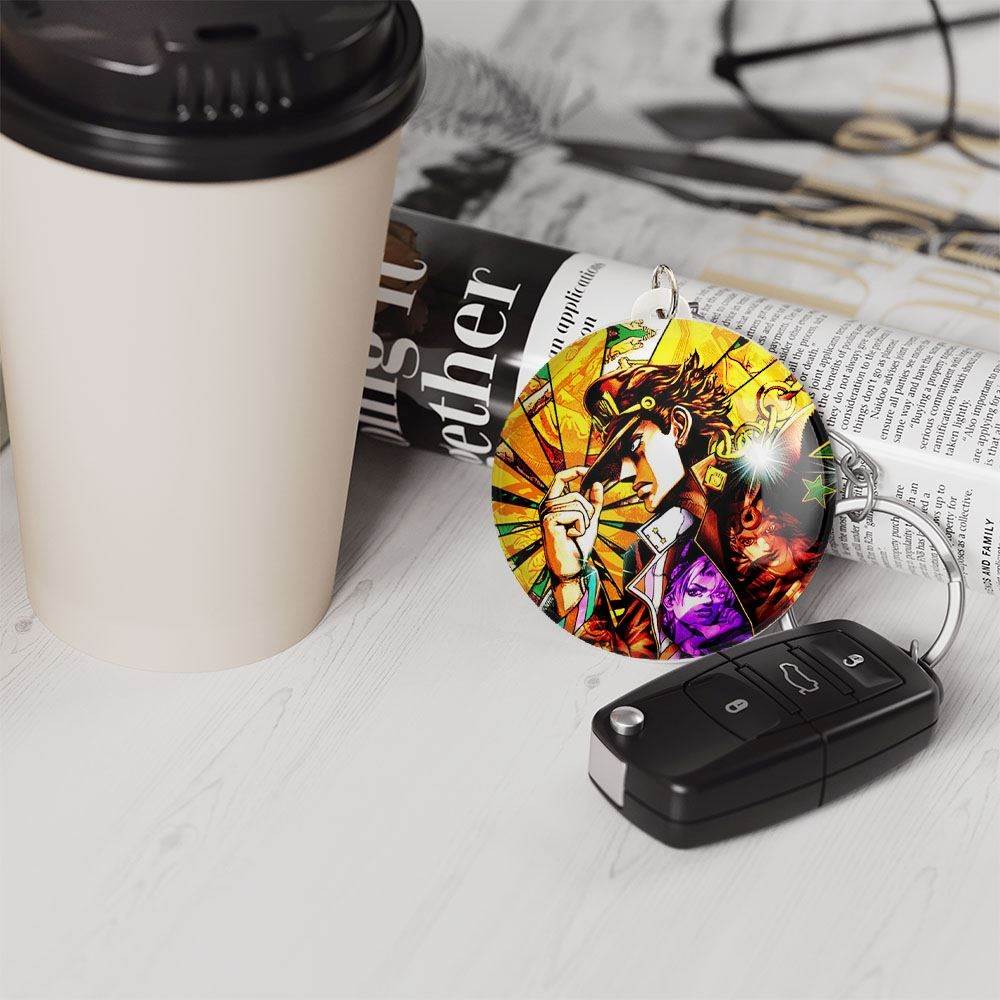 چاپ جاکلیدی کوجو جوتارو انیمه جوجو Jojo با دستگاه های استاندارد و با بهترین سطح کیفیت صورت گرفته و طرح با شفافیتی مثال زدنی و با سلفون حرارتی مات مخملی ضدخش تولید شده است که باعث می شود محصول نهایی بدون شکست نور دیده شود.