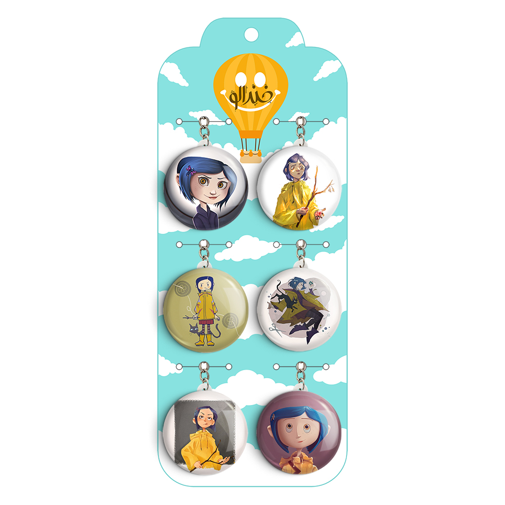 پک 6 عددی جاکلیدی خندالو طرح کورالین (Coraline) با استفاده از روکش سلفون حرارتی مات ضدخش تولید شده که خاصیت ضدخش بودن آن عمر مفید استفاده از جاکلیدی ها را افزایش میدهد. چاپ جاکلیدی ها با دستگاه های استاندارد و با بهترین سطح کیفیت صورت گرفته و طرح با شفافیتی مثال زدنی و با سلفون چسبی تولید شده است که باعث شده محصول نهایی بدون شکست نور دیده شود.