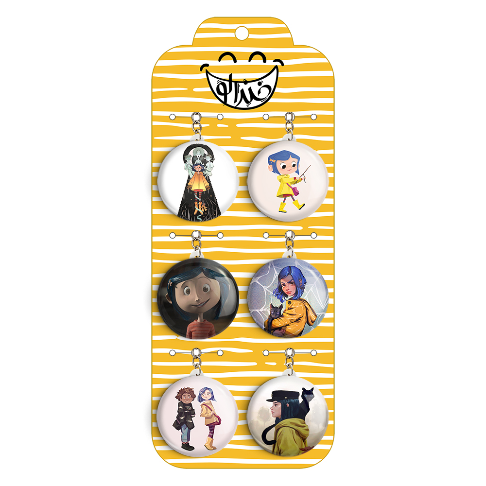 پک 6 عددی جاکلیدی خندالو طرح کورالین (Coraline) با استفاده از روکش سلفون حرارتی مات ضدخش تولید شده که خاصیت ضدخش بودن آن عمر مفید استفاده از جاکلیدی ها را افزایش میدهد. چاپ جاکلیدی ها با دستگاه های استاندارد و با بهترین سطح کیفیت صورت گرفته و طرح با شفافیتی مثال زدنی و با سلفون چسبی تولید شده است که باعث شده محصول نهایی بدون شکست نور دیده شود.