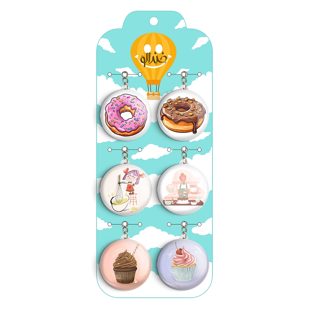 پک 6 عددی جاکلیدی خندالو طرح کیک و شیرینی پزی با استفاده از روکش سلفون حرارتی مات ضدخش تولید شده که خاصیت ضدخش بودن آن عمر مفید استفاده از جاکلیدی ها را افزایش میدهد. چاپ جاکلیدی ها با دستگاه های استاندارد و با بهترین سطح کیفیت صورت گرفته و طرح با شفافیتی مثال زدنی و با سلفون چسبی تولید شده است که باعث شده محصول نهایی بدون شکست نور دیده شود. همچنین بسته بندی جذاب و مینیمال جاکلیدی ها، آنها را محصولی مناسب هدیه کرده است. زنجیر و حلقه بکار برده شده در جاکلیدی خندالو از نوع حلقه درجه یک و ضخیم و محکم بوده و حین استفاده آسیب نمی بیند. قطعی پشتی جاکلیدی از جنس ABS شفاف سفید رنگ تولید شده که در مقابل خط و خش مقاوم بوده و به هیچ عنوان دچار شکستگی نخواهد شد.