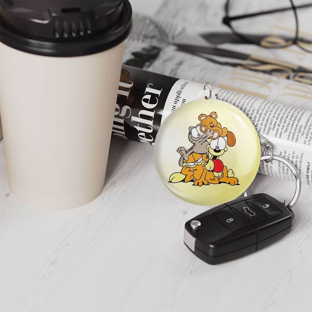 خندالو جاکلیدی گارفیلد Garfield را با استفاده از روکش سلفون حرارتی مات مخملی ضدخش تولید می کند که خاصیت ضدخش بودن آن، کمک میکند تا عمر مفید استفاده از جاکلیدی ها افزایش پیدا کند و با یک خراش ساده مثل برخورد سطح ناخن با محصول، دچار و خط و خش نشود.