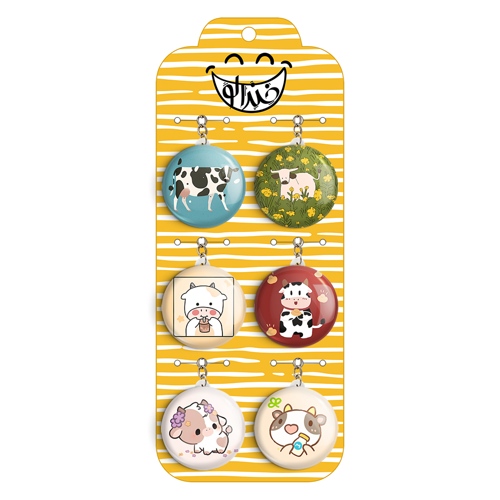 پک 6 عددی جاکلیدی خندالو طرح گاو (Cow) با استفاده از روکش سلفون حرارتی مات ضدخش تولید شده که خاصیت ضدخش بودن آن عمر مفید استفاده از جاکلیدی ها را افزایش میدهد. چاپ جاکلیدی ها با دستگاه های استاندارد و با بهترین سطح کیفیت صورت گرفته و طرح با شفافیتی مثال زدنی و با سلفون چسبی تولید شده است که باعث شده محصول نهایی بدون شکست نور دیده شود. همچنین بسته بندی جذاب و مینیمال جاکلیدی ها، آنها را محصولی مناسب هدیه کرده است. زنجیر و حلقه بکار برده شده در جاکلیدی خندالو از نوع حلقه درجه یک و ضخیم و محکم بوده و حین استفاده آسیب نمی بیند. قطعی پشتی جاکلیدی از جنس ABS شفاف سفید رنگ تولید شده که در مقابل خط و خش مقاوم بوده و به هیچ عنوان دچار شکستگی نخواهد شد.