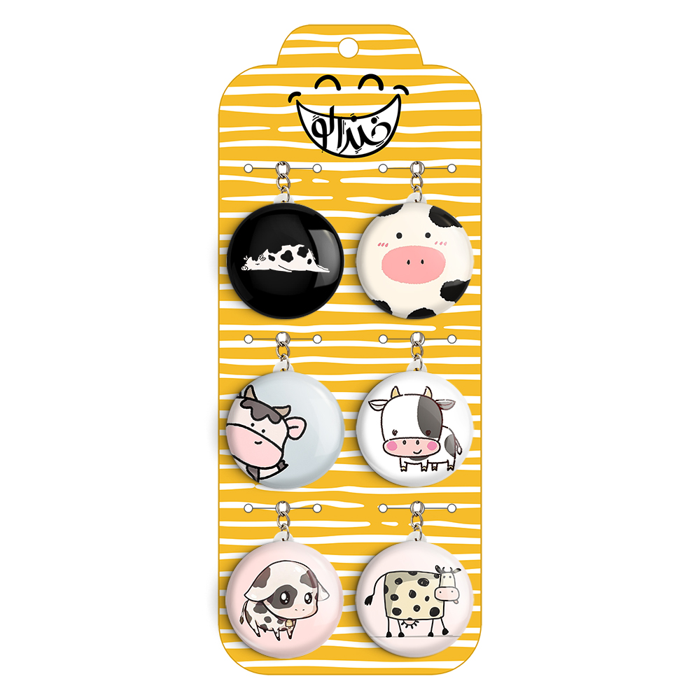 پک 6 عددی جاکلیدی خندالو طرح گاو (Cow) با استفاده از روکش سلفون حرارتی مات ضدخش تولید شده که خاصیت ضدخش بودن آن عمر مفید استفاده از جاکلیدی ها را افزایش میدهد. چاپ جاکلیدی ها با دستگاه های استاندارد و با بهترین سطح کیفیت صورت گرفته و طرح با شفافیتی مثال زدنی و با سلفون چسبی تولید شده است که باعث شده محصول نهایی بدون شکست نور دیده شود. همچنین بسته بندی جذاب و مینیمال جاکلیدی ها، آنها را محصولی مناسب هدیه کرده است. زنجیر و حلقه بکار برده شده در جاکلیدی خندالو از نوع حلقه درجه یک و ضخیم و محکم بوده و حین استفاده آسیب نمی بیند. قطعی پشتی جاکلیدی از جنس ABS شفاف سفید رنگ تولید شده که در مقابل خط و خش مقاوم بوده و به هیچ عنوان دچار شکستگی نخواهد شد.