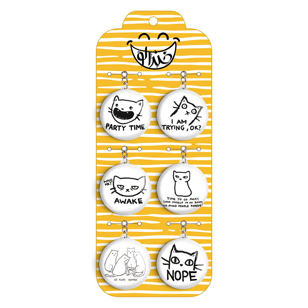 پک 6 عددی جاکلیدی خندالو طرح گربه (Cat) با استفاده از روکش سلفون حرارتی مات ضدخش تولید شده که خاصیت ضدخش بودن آن عمر مفید استفاده از جاکلیدی ها را افزایش میدهد. چاپ جاکلیدی ها با دستگاه های استاندارد و با بهترین سطح کیفیت صورت گرفته و طرح با شفافیتی مثال زدنی و با سلفون چسبی تولید شده است که باعث شده محصول نهایی بدون شکست نور دیده شود.
