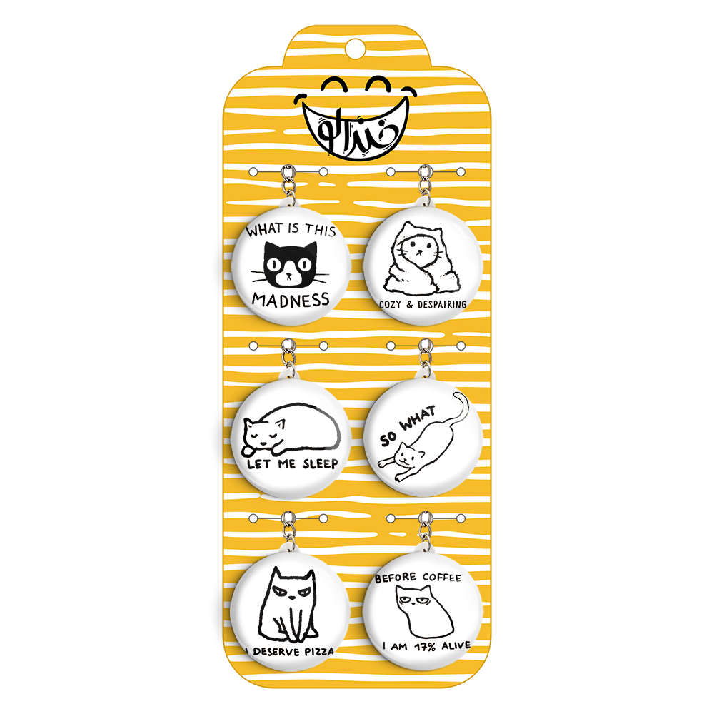پک 6 عددی جاکلیدی خندالو طرح گربه (Cat) با استفاده از روکش سلفون حرارتی مات ضدخش تولید شده که خاصیت ضدخش بودن آن عمر مفید استفاده از جاکلیدی ها را افزایش میدهد. چاپ جاکلیدی ها با دستگاه های استاندارد و با بهترین سطح کیفیت صورت گرفته و طرح با شفافیتی مثال زدنی و با سلفون چسبی تولید شده است که باعث شده محصول نهایی بدون شکست نور دیده شود.