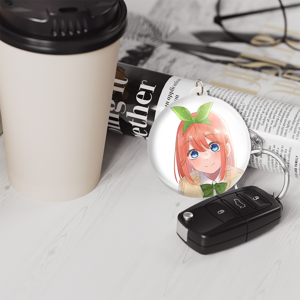 خندالو جاکلیدی یوتسوبا انیمه پنج عروس مساوی را با استفاده از روکش سلفون حرارتی مات مخملی ضدخش تولید می کند که خاصیت ضدخش بودن آن، کمک میکند تا عمر مفید استفاده از جاکلیدی ها افزایش پیدا کند و با یک خراش ساده مثل برخورد سطح ناخن با محصول، دچار و خط و خش نشود.