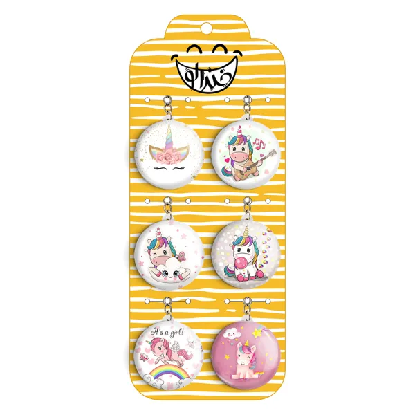 پک 6 عددی جاکلیدی خندالو طرح یونیکورن (Unicorn) با استفاده از روکش سلفون حرارتی مات ضدخش تولید شده که خاصیت ضدخش بودن آن عمر مفید استفاده از جاکلیدی ها را افزایش میدهد. چاپ جاکلیدی ها با دستگاه های استاندارد و با بهترین سطح کیفیت صورت گرفته و طرح با شفافیتی مثال زدنی و با سلفون چسبی تولید شده است که باعث شده محصول نهایی بدون شکست نور دیده شود. همچنین بسته بندی جذاب و مینیمال جاکلیدی ها، آنها را محصولی مناسب هدیه کرده است. زنجیر و حلقه بکار برده شده در جاکلیدی خندالو از نوع حلقه درجه یک و ضخیم و محکم بوده و حین استفاده آسیب نمی بیند. قطعی پشتی جاکلیدی از جنس ABS شفاف سفید رنگ تولید شده که در مقابل خط و خش مقاوم بوده و به هیچ عنوان دچار شکستگی نخواهد شد.