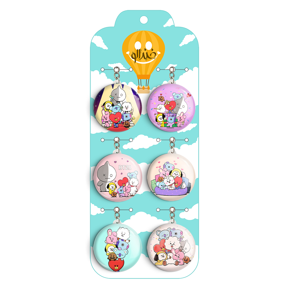 پک 6 عددی جاکلیدی خندالو طرح BT21 با استفاده از روکش سلفون حرارتی مات ضدخش تولید شده که خاصیت ضدخش بودن آن عمر مفید استفاده از جاکلیدی ها را افزایش میدهد. چاپ جاکلیدی ها با دستگاه های استاندارد و با بهترین سطح کیفیت صورت گرفته و طرح با شفافیتی مثال زدنی و با سلفون چسبی تولید شده است که باعث شده محصول نهایی بدون شکست نور دیده شود.