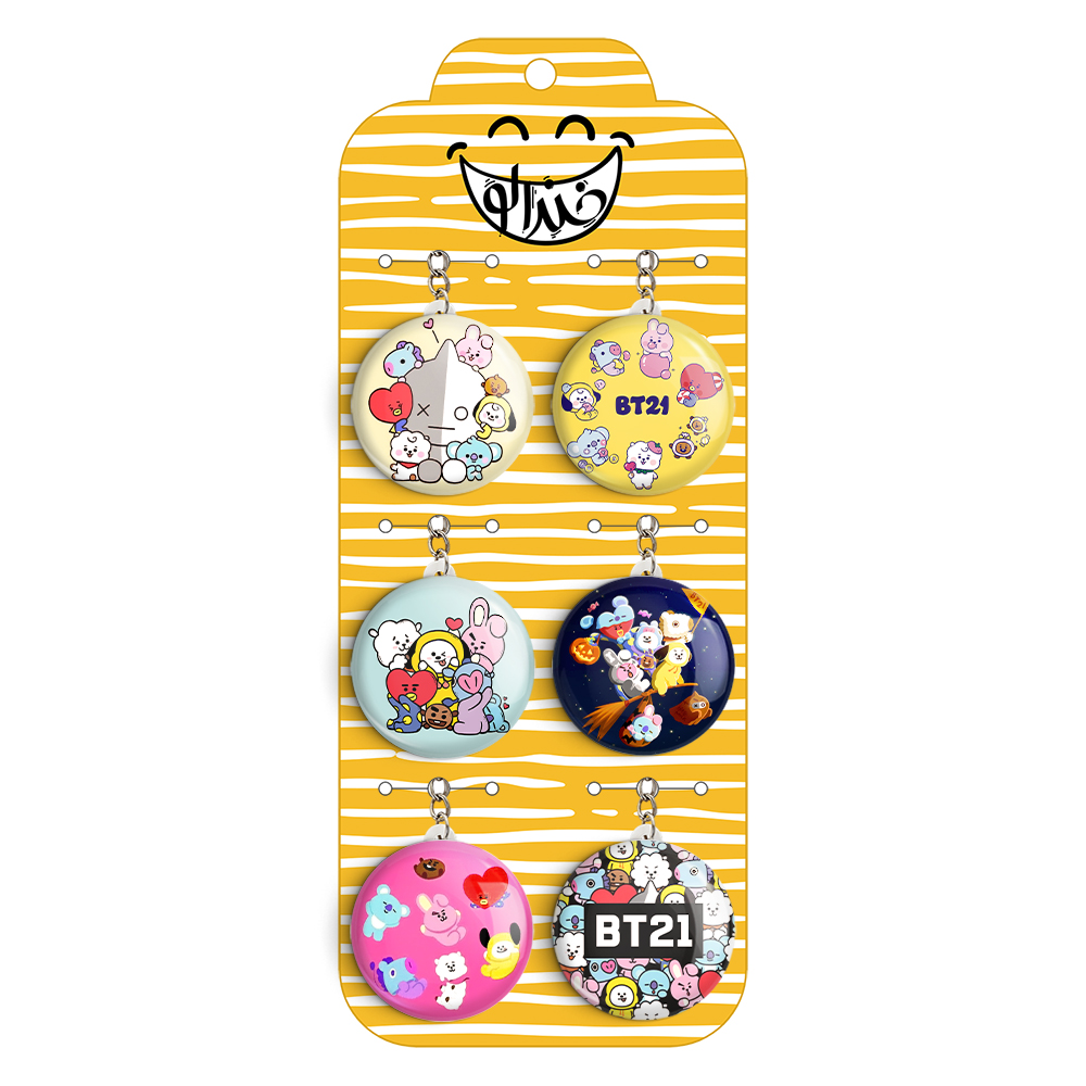 پک 6 عددی جاکلیدی خندالو طرح BT21 با استفاده از روکش سلفون حرارتی مات ضدخش تولید شده که خاصیت ضدخش بودن آن عمر مفید استفاده از جاکلیدی ها را افزایش میدهد. چاپ جاکلیدی ها با دستگاه های استاندارد و با بهترین سطح کیفیت صورت گرفته و طرح با شفافیتی مثال زدنی و با سلفون چسبی تولید شده است که باعث شده محصول نهایی بدون شکست نور دیده شود.