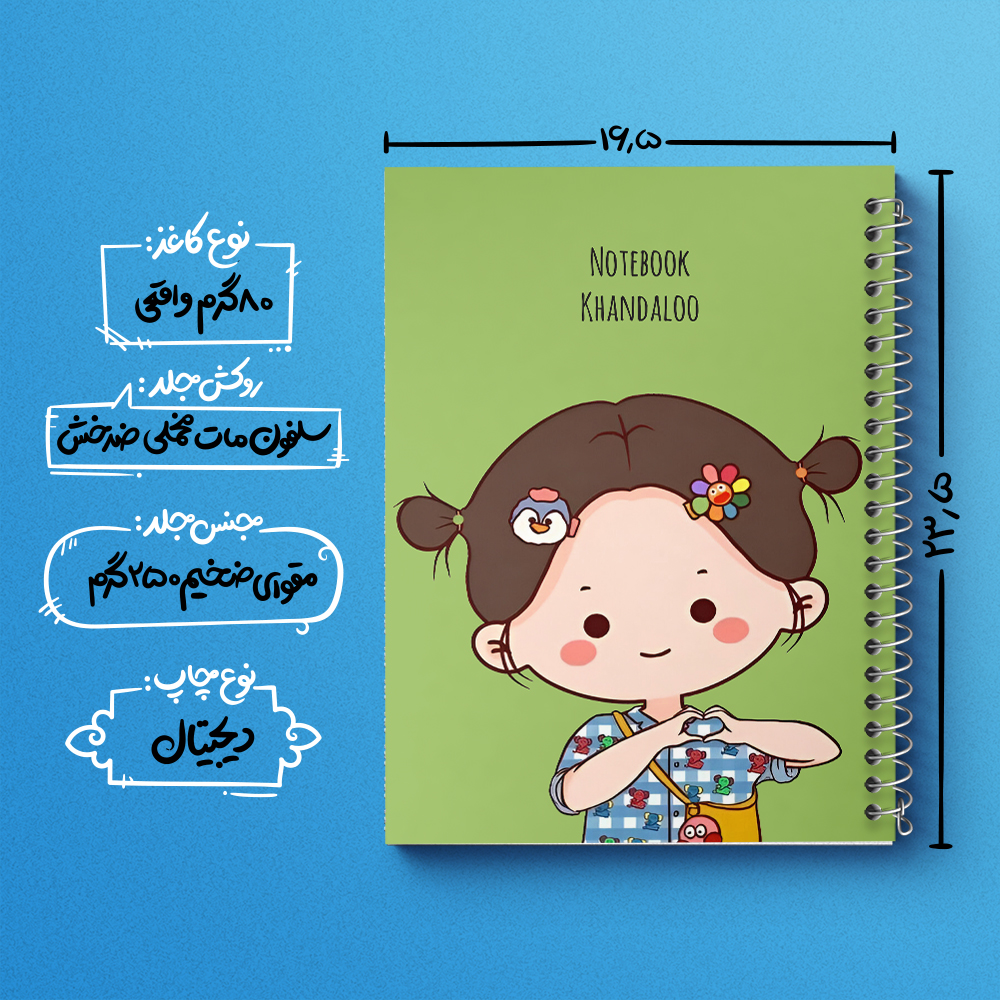 برند خندالو در زمینه تولید انواع دفاتر فانتزی و تحصیلی فعالیت میکند که به دلیل جذابیت ظاهری و طرح های متنوع طرفداران زیادی دارد. دفتر مشق خندالو محصولی مناسب برای استفاده به عنوان دفتر ریاضی، فیزیک، شیمی و جزوات دروس دانشجویان رشته های مختلف است.