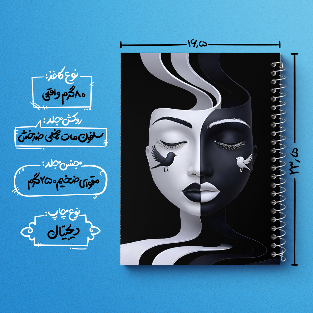 دفتر دختر سیاه و سفید