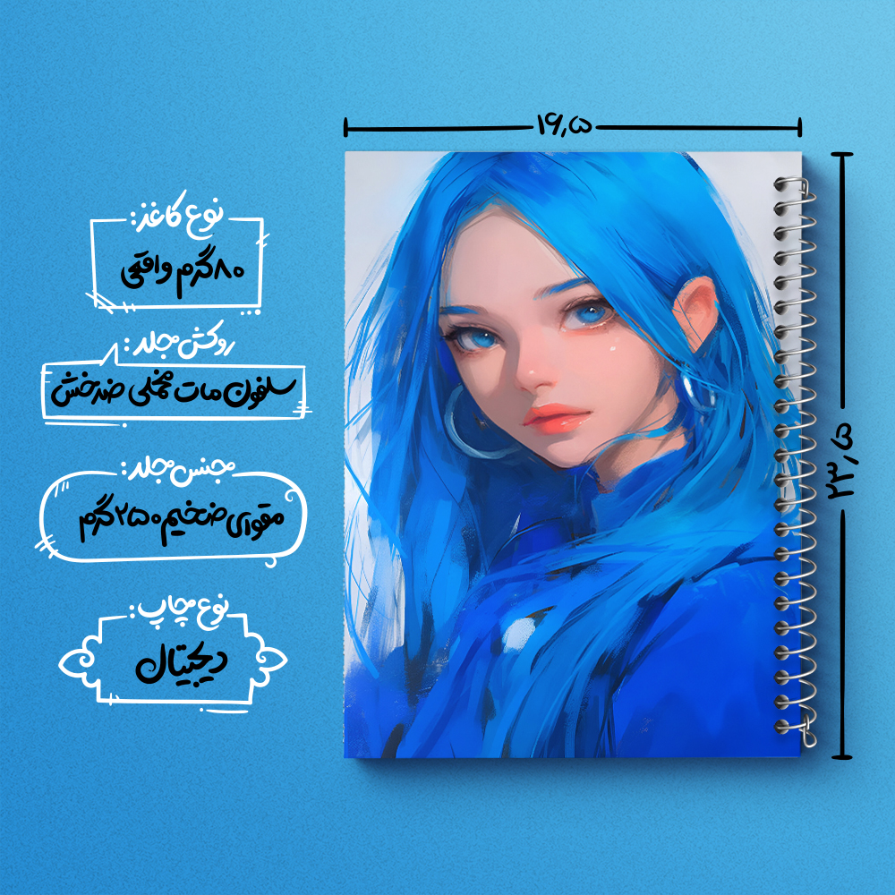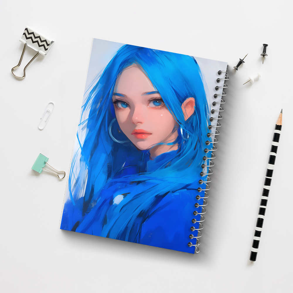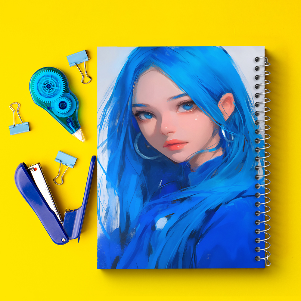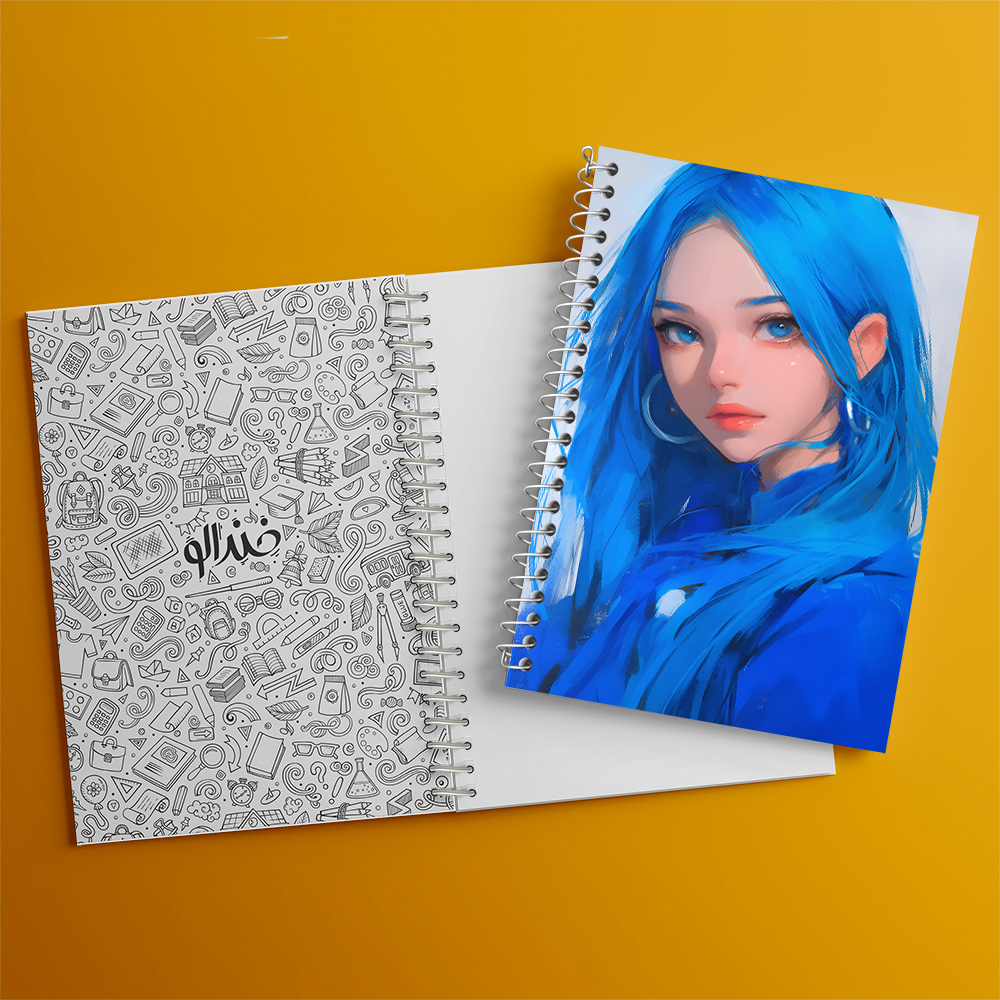 دفتر دختر مو آبی
