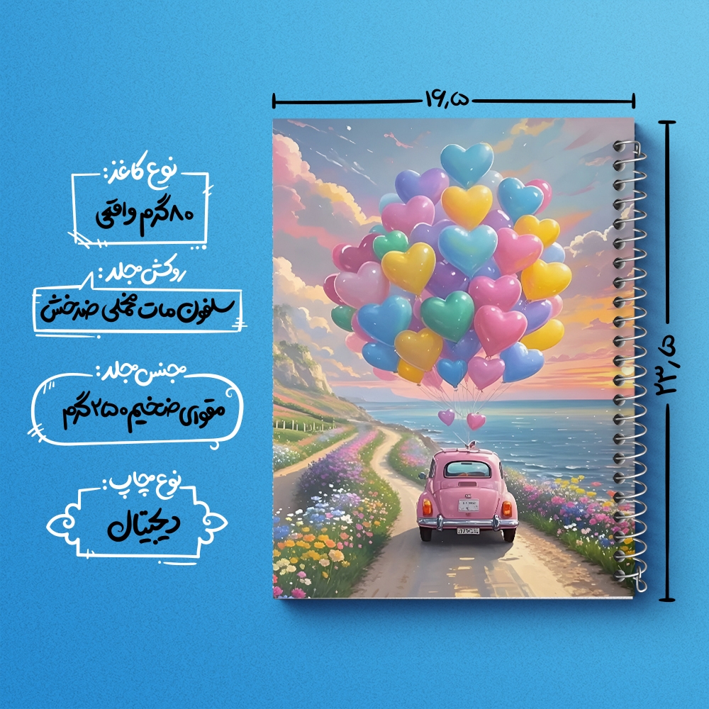 دفتر فولکس و بادکنک های رنگی