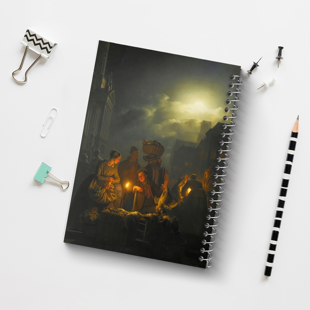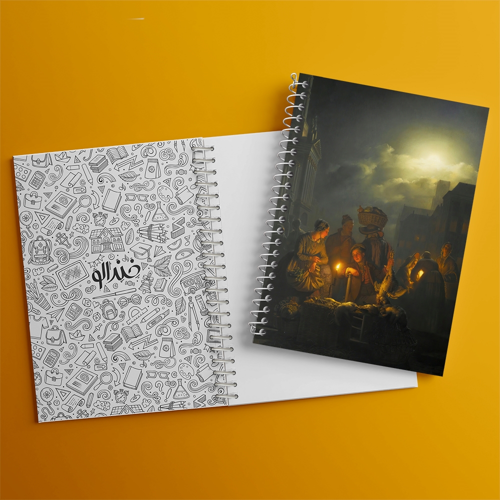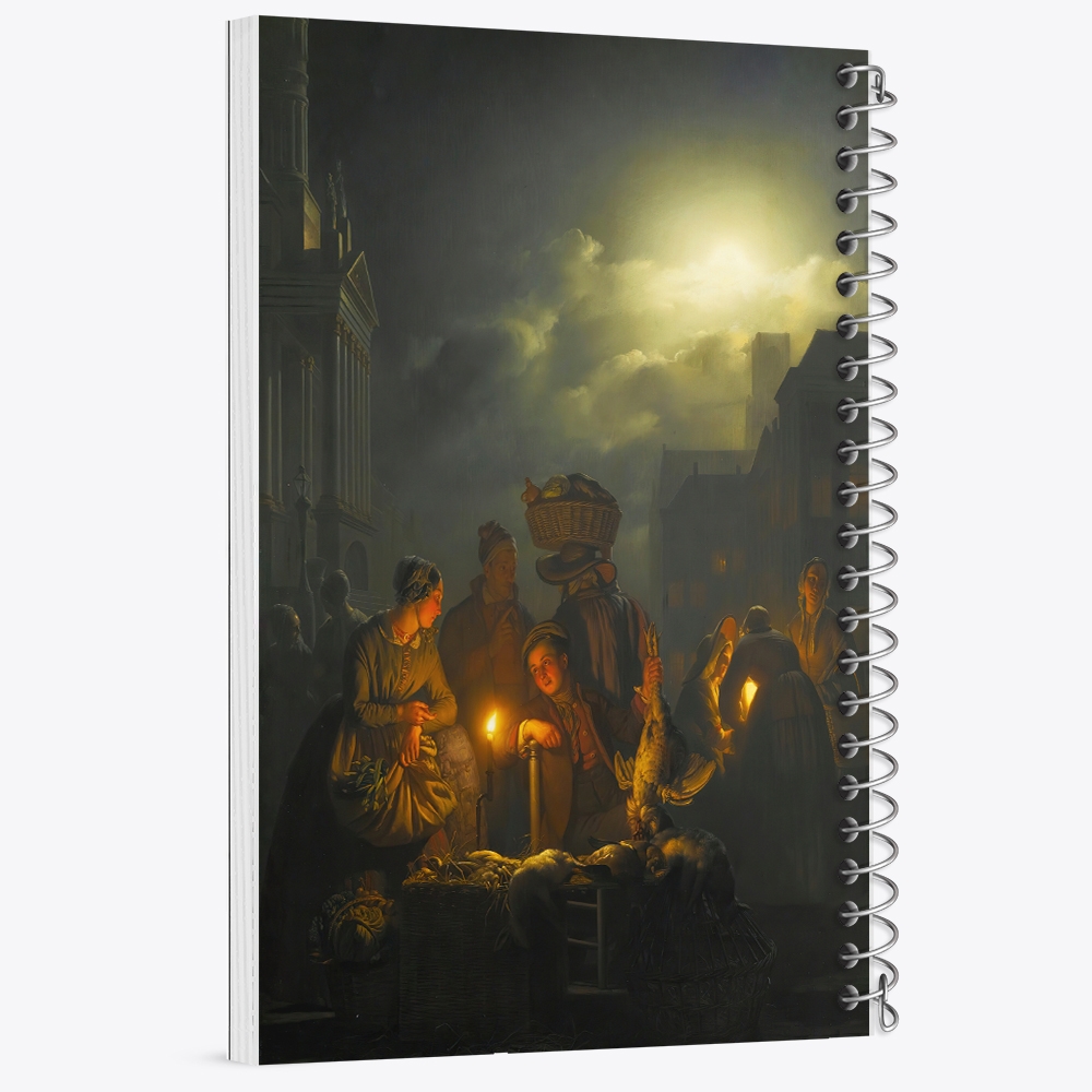 دفتر نقاشی بازار شبانه هلندی در روتردام اثر پتروس ون شندل