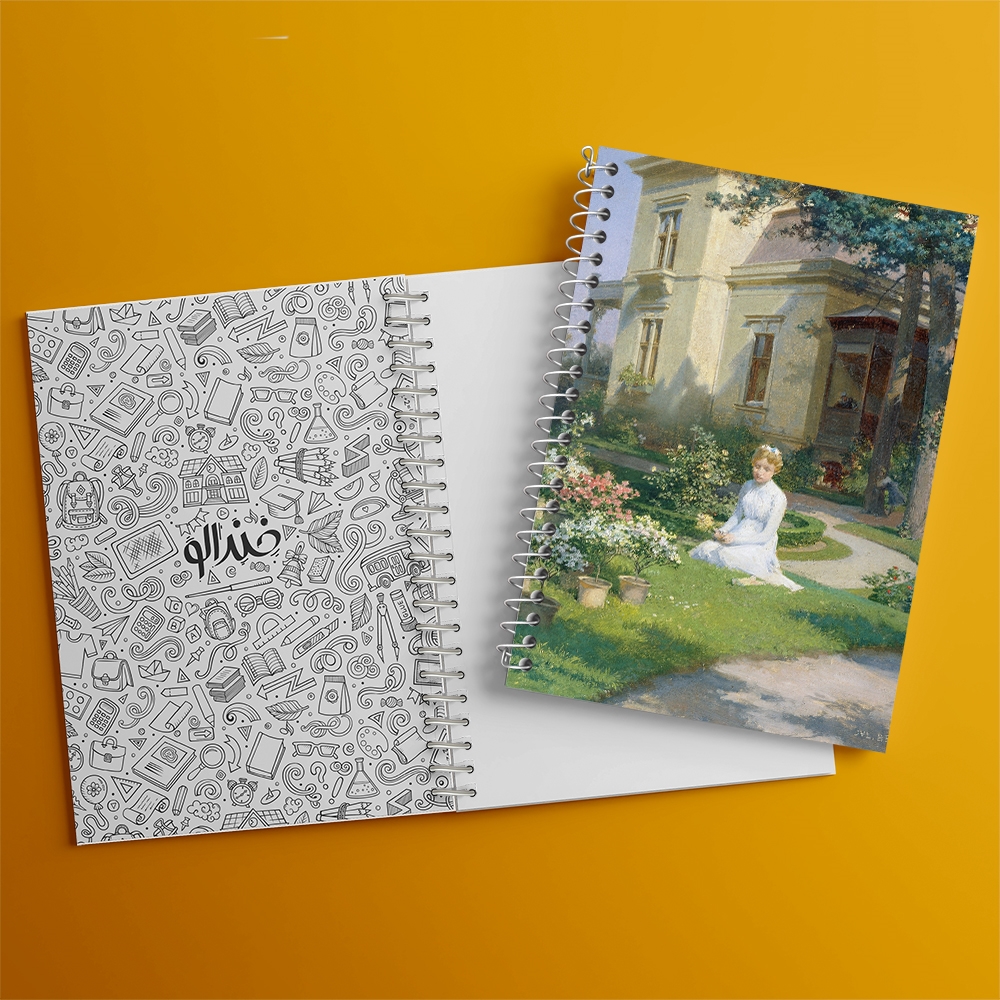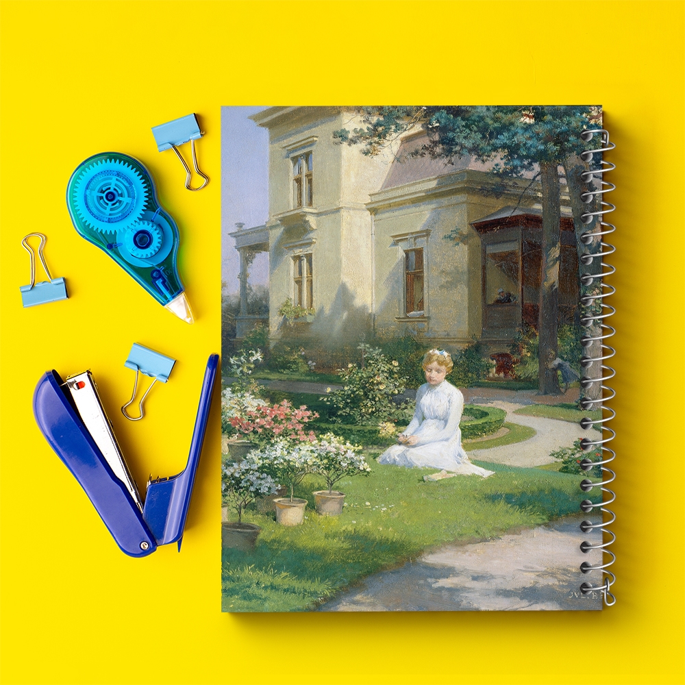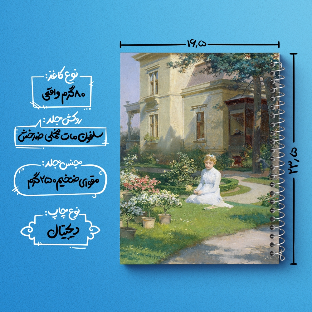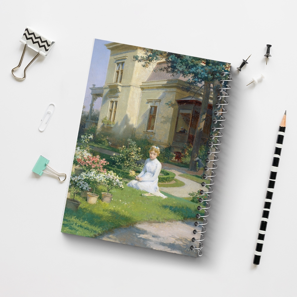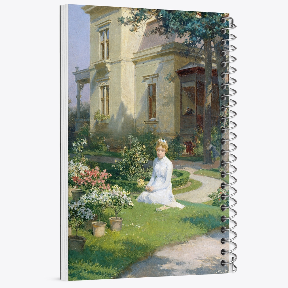 دفتر نقاشی دختری در باغ ویلایی اثر جولیوس ویکتور برگر