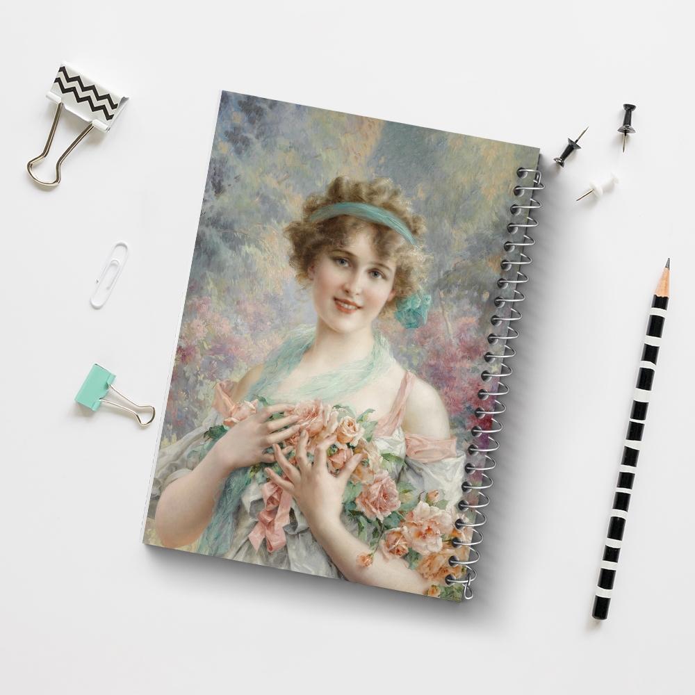دفتر نقاشی دختر با گل‌های رز اثر امیل ورنون