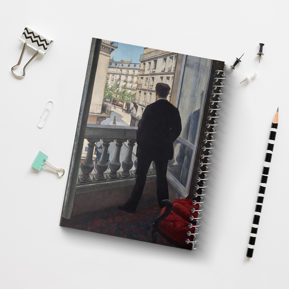 دفتر نقاشی مرد جوان در کنار پنجره‌ اثر گوستاو کایبوت